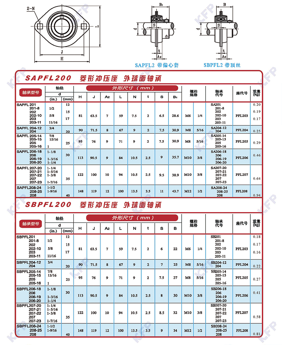 SAPFL200、SBPFL200菱形冲压座外球面轴承